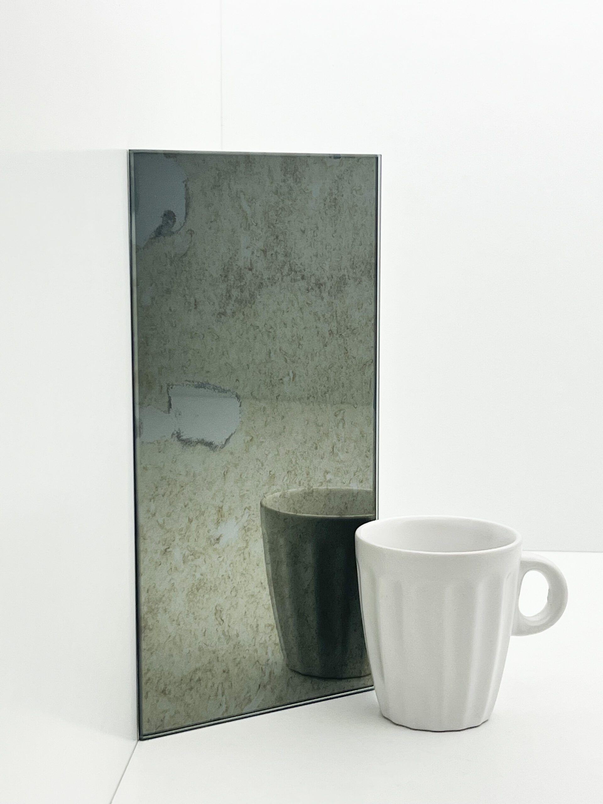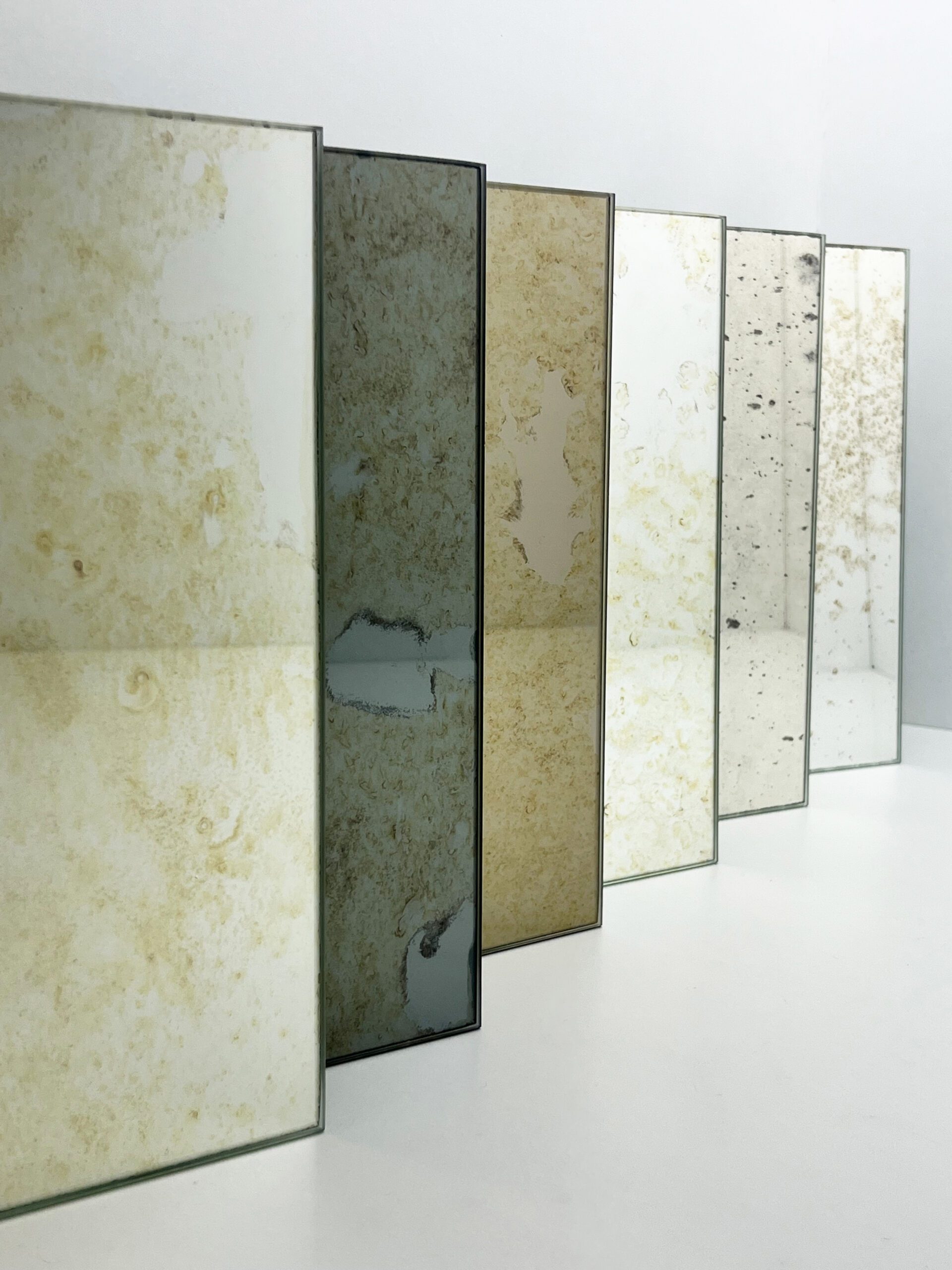 OMIROR ANTIQUE est une gamme de miroirs fabriqués en France, leur aspect est celui d’un miroir vieilli. Cet effet permanent est obtenu lors de la production, en jouant sur la régularité des dépôts métalliques. Les miroirs de la gamme OMIROR sont disponibles sur différents substrats : verre clair, verre teinté dans la masse bronze, gris, etc.
